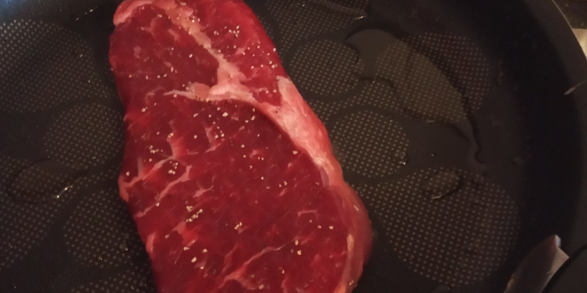 Dzień przed przygotowaniem dania, należy nasolić stek na sucho. Wyciągnij mięso z opakowania, przepłucz i wysusz papierowym ręcznikiem. Następnie posól jedną stronę i odłóż mięso do lodówki na minimum kilka godzin lub najlepiej na cały dzień.